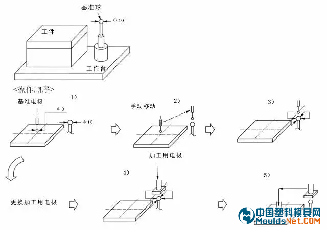 對(duì)于數(shù)控放電機(jī),推薦使用基準(zhǔn)球分中的方法,這是模具工廠放電必備的方法。通常的做法是:
